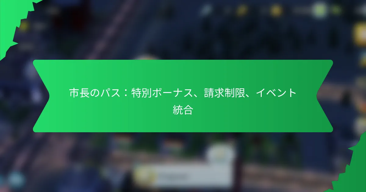 市長パスは、参加者に独自のボーナスや特典を提供する特別なプログラムです。ユーザーが報酬を請求し、イベントにアクセスできるようにすることで、全体的な体験を向上させます。